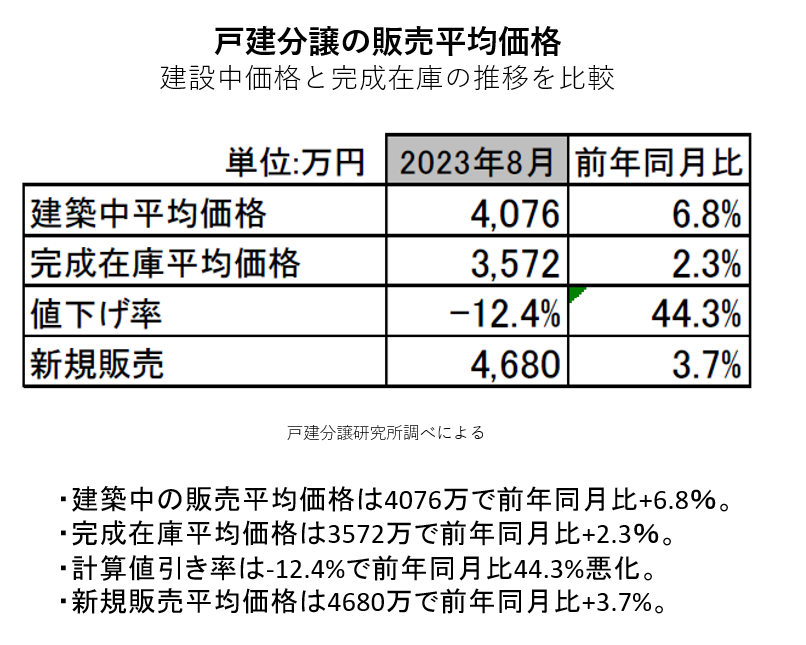 その結果、完成後に10%を超える値引きによって、処分している実態が見えてきます。