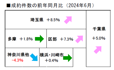 成約件数は横浜・川崎市以外の地域が前年比で増加。