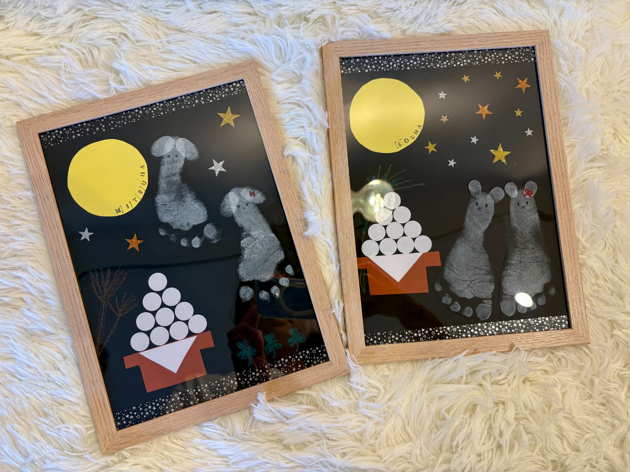 9月15日がお月見ということで、うさぎに見立てた足形をとりました👣