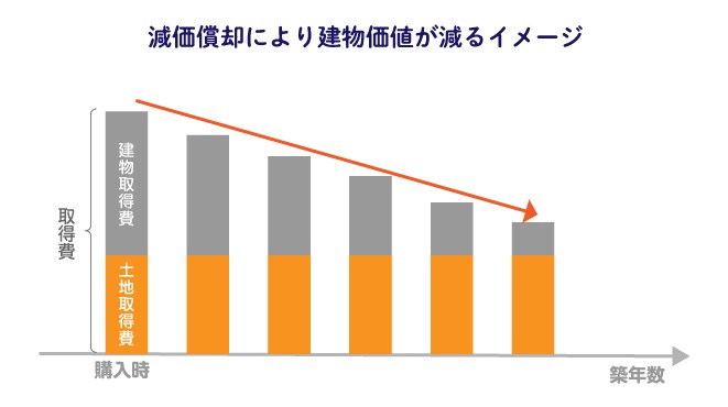 実際には十分使える建物であっても、会計上は建物の価値は少しずつ目減りしていくという考え方を採用していて、新築と変わりなくキレイな家であっても会計上の所定の計算で減価します。
