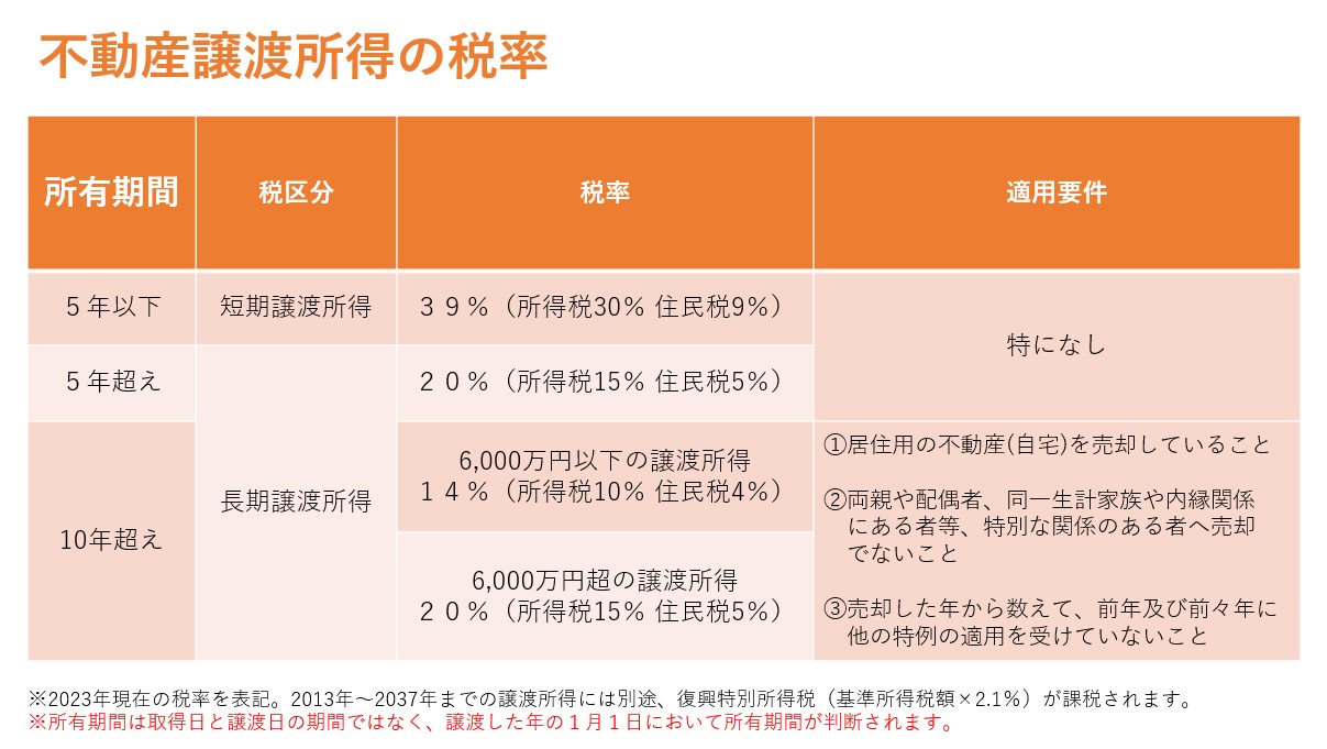 「税」を計算する際は、不動産の所有期間によって区分された税率によって計算される点に注意が必要です。